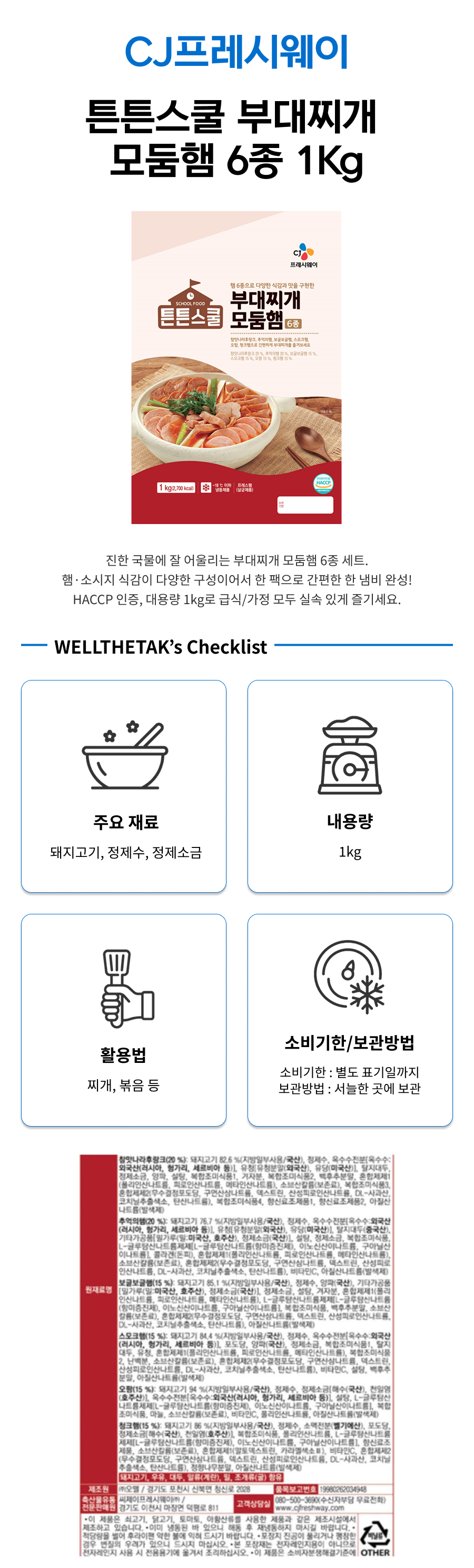 튼튼스쿨 부대찌개 모둠햄 6종 1kg