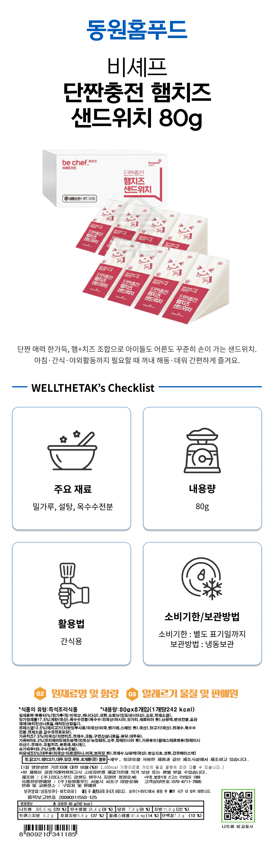 비셰프 단짠충전 햄치즈 샌드위치 (80g*8개)