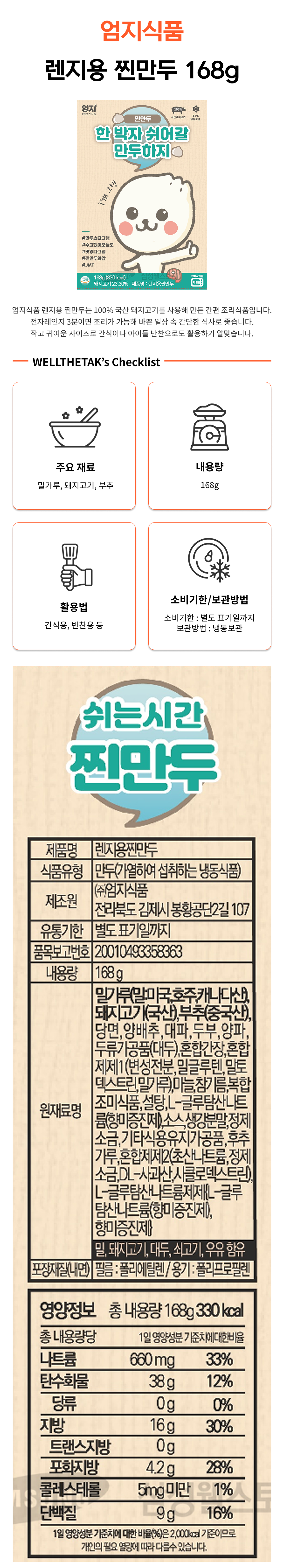엄지식품 렌지용 찐만두 168g
