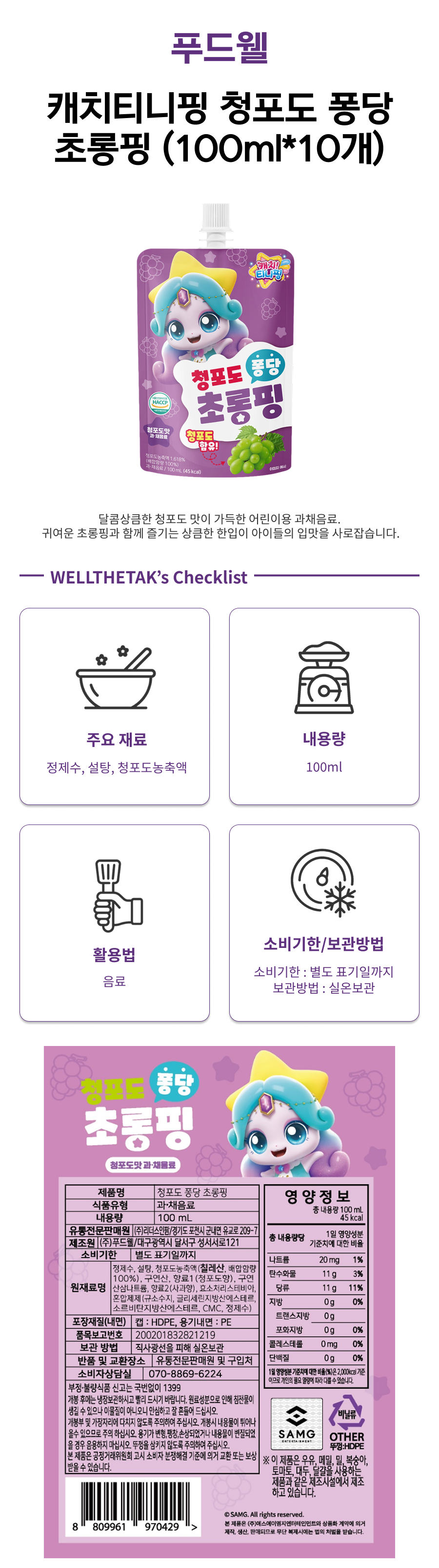 캐치티니핑 청포도 퐁당 초롱핑 (100ml*10개)