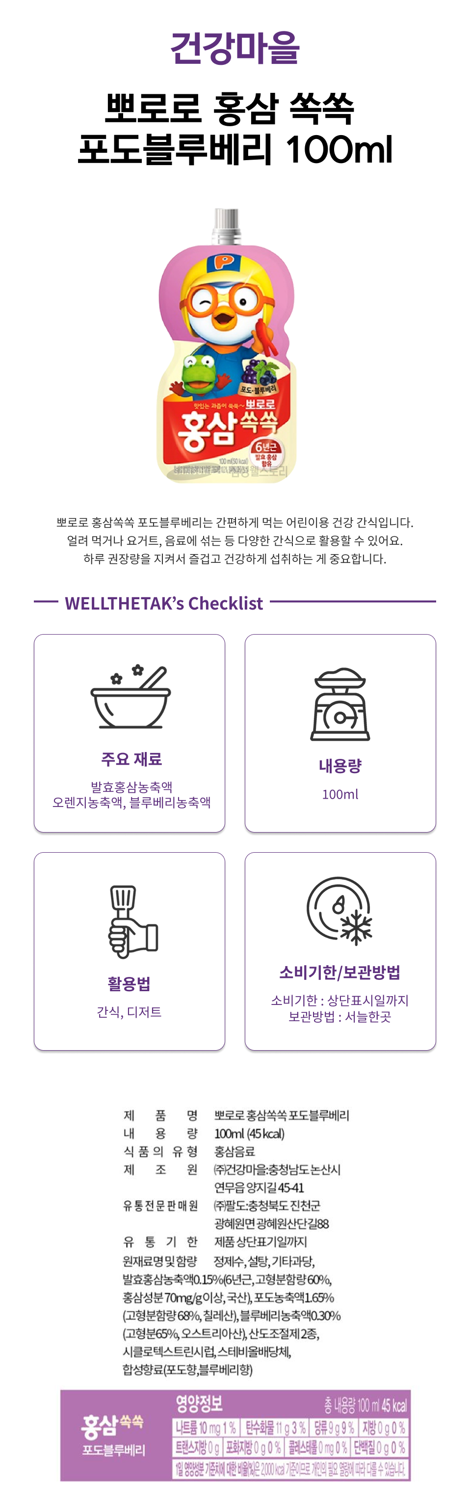 뽀로로 홍삼쏙쏙 포도블루베리 (100ml*10개)