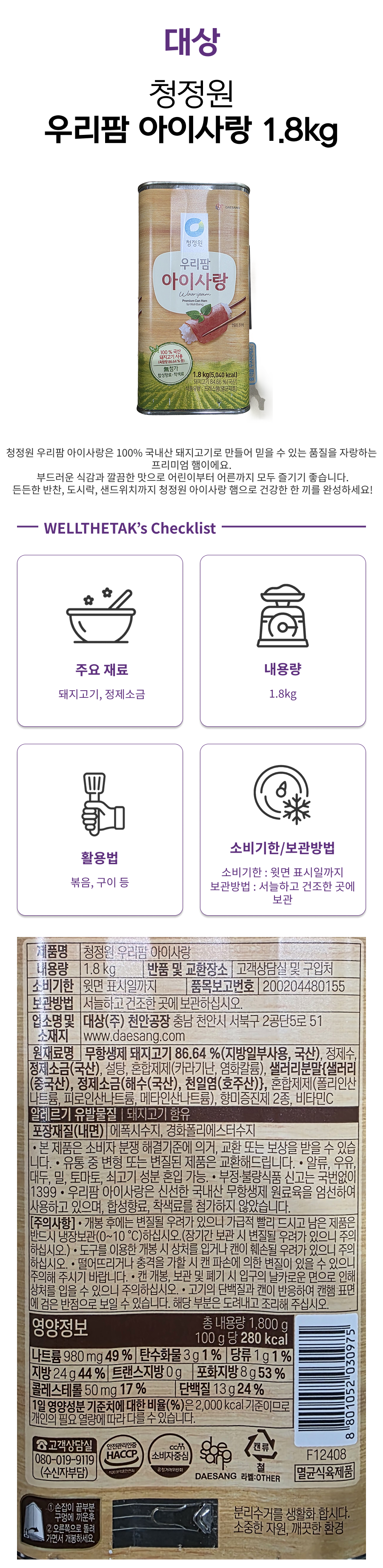 | 소비자 안전을 위한 주의사항 (「식품 등의 표시ㆍ광고에 관한 법률 시행규칙」 제5조 및 [별표 2]에 따른 표시사항을 말함) | 상품설명 및 상품이미지 참조 | |