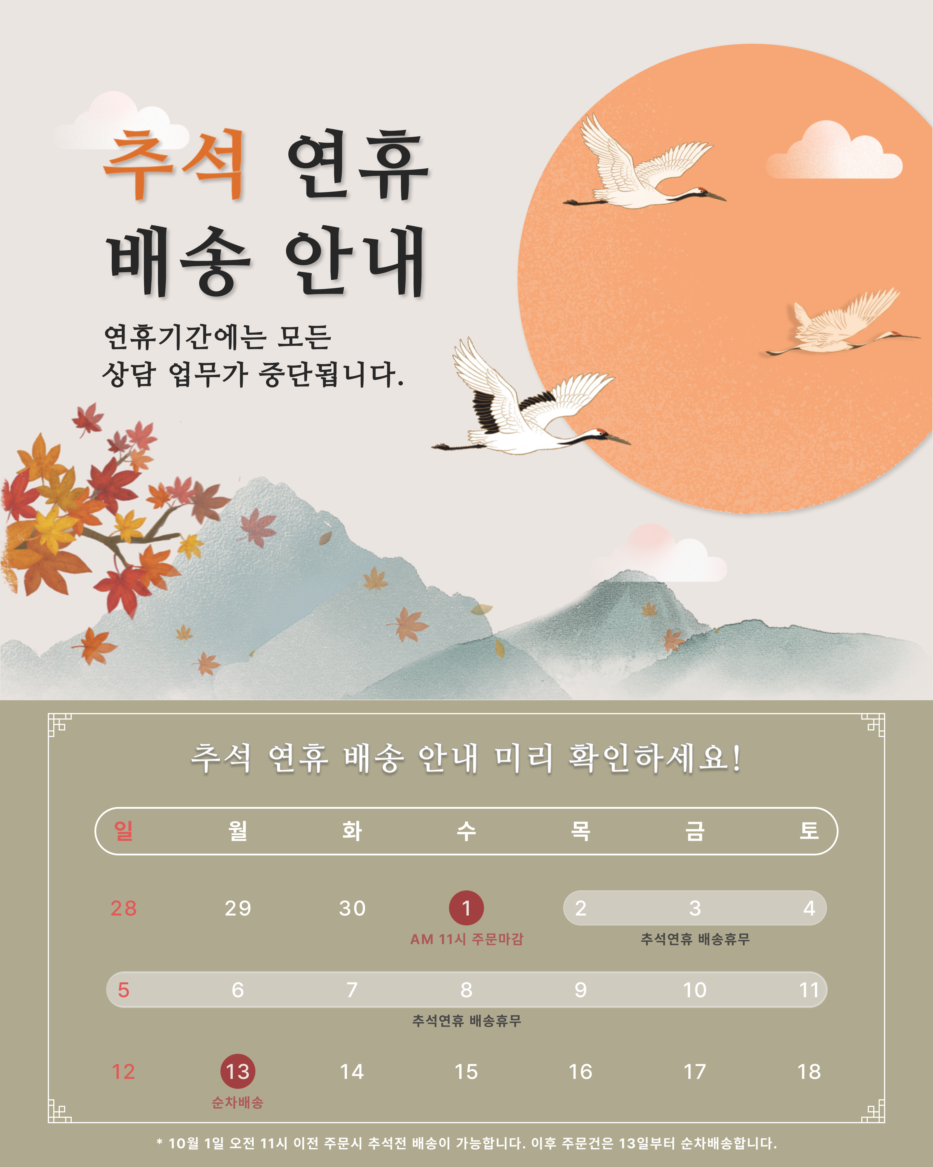 단순변심에 의한 교환/반품은 상품 수령일 포함 7일 이내까지, 교환/반품 불가 사유에 해당하지 않는 경우에 가능합니다. 상품에 문제가 있는 경우, 상품 수령일 포함 2일 이내(주말, 공휴일 포함) 고객센터로 사진첨부 후 내용을 접수해 주세요. 상품이 표기/광고내용과 다르거나 계약내용과 다른 경우 상품을 받으신 날부터 3개월 이내, 또는 사실을 알게된 날(알 수 있었던 날)부터 30일 이내에 신청 가능합니다. |