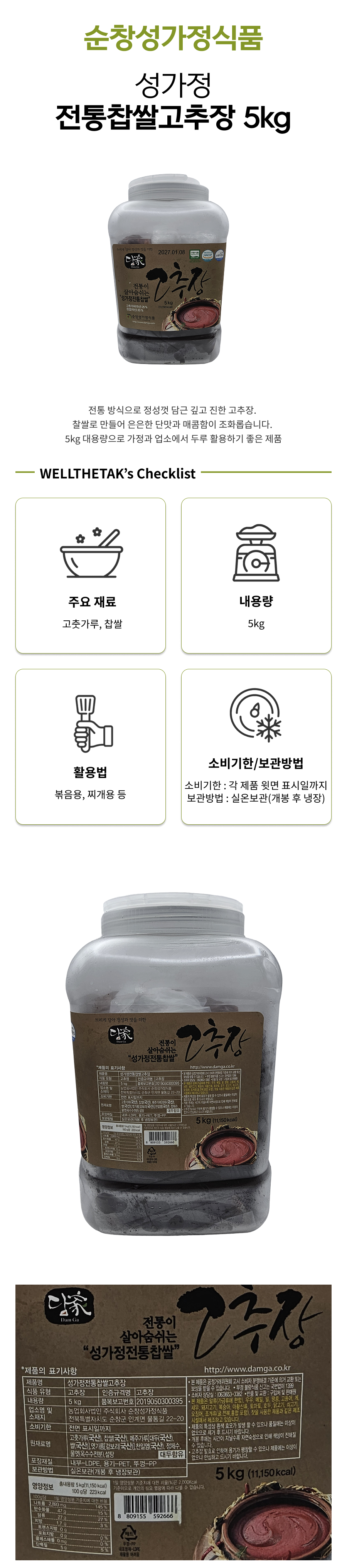 성가정 전통찹쌀고추장 5kg